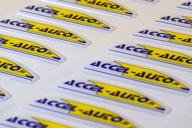 Il s’agit d’un revêtement en résine polyuréthane transparente, appliqué en forme de dôme sur autocollant imprimé. Ce procédé donne un effet 3D bombé, protège l’impression et renforce la perception qualitative de votre marquage.